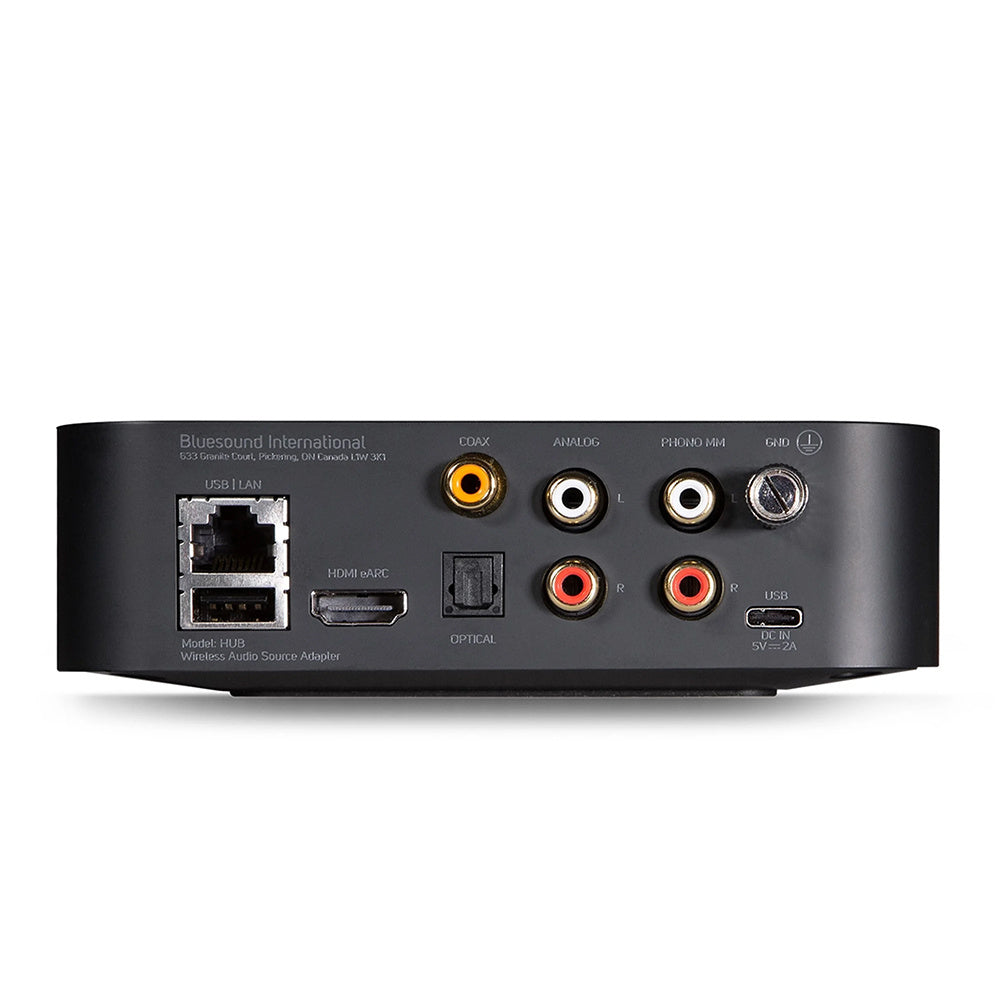 Simply add a Bluesound HUB to any audio source and stream it through your Bluesound multi-room music system. Enjoy your favorite music from audio sources such as a turntable or CD player in any other connected room in your home.