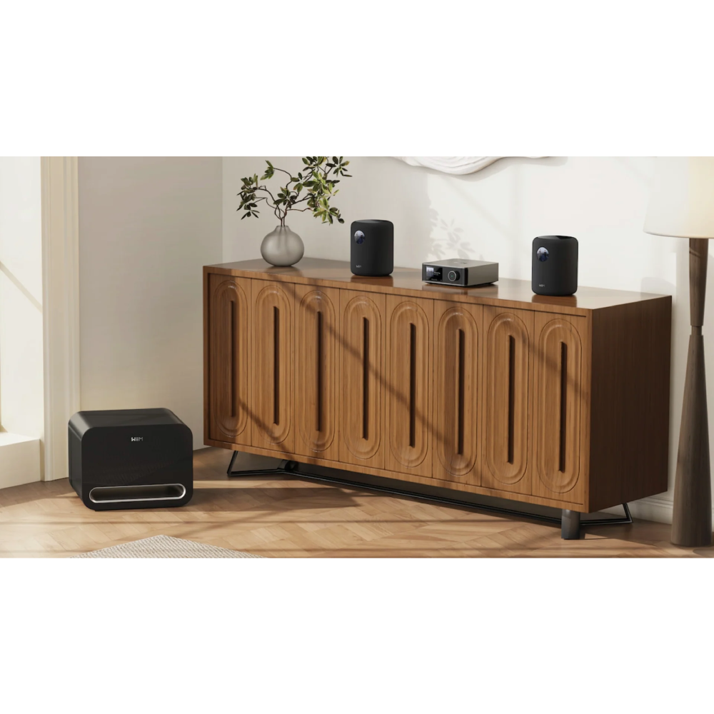 The WiiM Sound can function solo, but really comes into its own in a larger setup. Pair two speakers for true stereo sound, or use it as a center or surround channel in a Dolby 5.1 wireless setup. Combined with the WiiM Amp Ultra, it creates a hybrid system that seamlessly blends wired and wireless speakers. So you can say goodbye to the traditional soundbar and switch to a fully flexible home theater system.