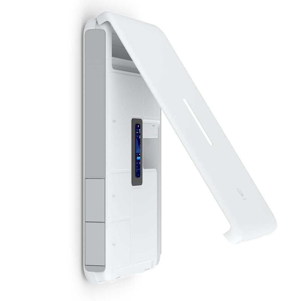 Passerelle cloud UniFi montable au mur avec point d'accès WiFi 6 intégré, commutation PoE et prise en charge complète des applications UniFi.