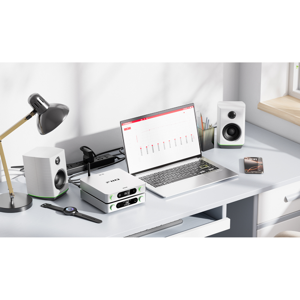 Een krachtig extra is de wereldwijde 10-bands parametrische equalizer, die in alle bedrijfsmodi inzetbaar is. Via FIIO’s eigen app kun je kiezen uit diverse vooraf ingestelde klankprofielen of zelf nauwkeurig afstemmen. EQ-curves kunnen worden opgeslagen, gedeeld, geïmporteerd en geëxporteerd, zodat je het geluid volledig naar eigen smaak kunt finetunen. Voor wie eenvoud verkiest, maakt AUTO EQ het mogelijk om met minimale inspanning een optimaal resultaat te bereiken door een doelcurve te selecteren die past bij je hoofdtelefoon of systeem.