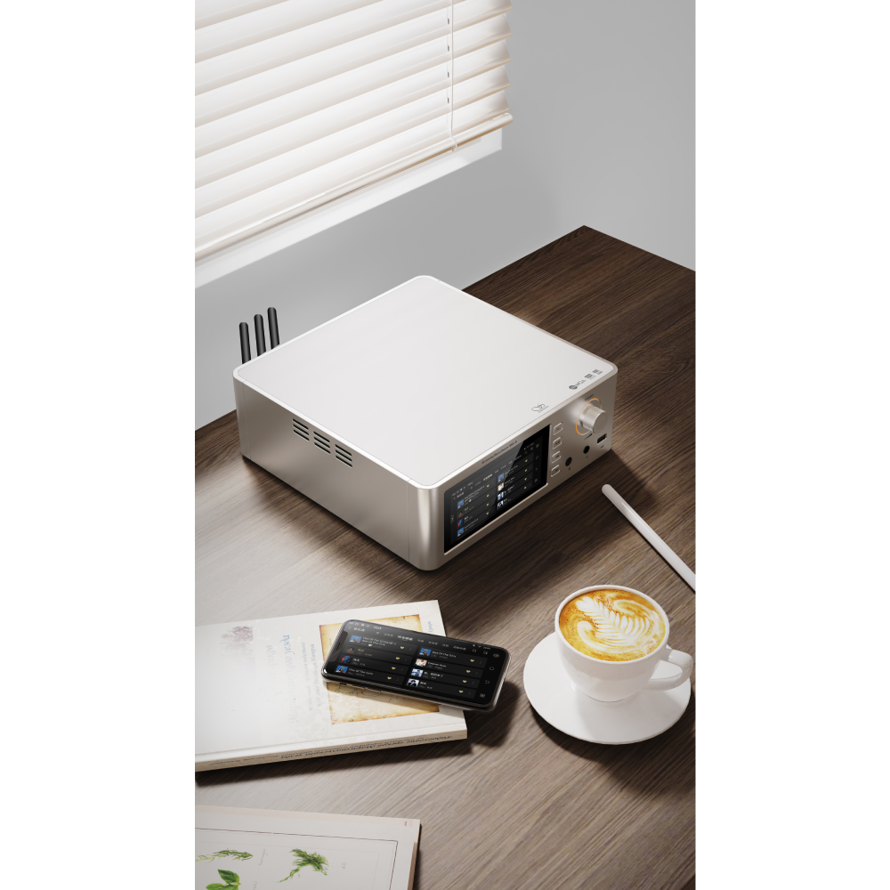Met de SM1.3 zet Shanling een nieuwe standaard neer voor netwerkspelers en DAC’s die het kloppend hart van een serieuze HiFi-set willen zijn. Het apparaat is uitgerust met AKM’s topcombinatie van de AK4499EX DAC en AK4141 Delta-Sigma modulator, waarmee audio tot PCM 32-bit/768kHz en DSD512 met uiterste precisie wordt omgezet. Dankzij ondersteuning voor een breed scala aan streamingdiensten zoals Spotify, Tidal, Qobuz, Apple Music, Apple Classical en Presto Music, aangevuld met DLNA, AirPlay 2 en Samba, functioneert de SM1.3 als een uiterst flexibele en toekomstbestendige netwerkspeler.