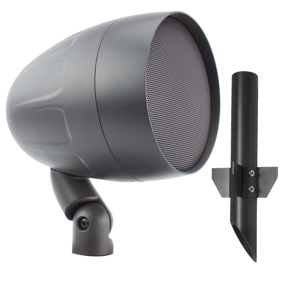 Schakelt over van 100 volt of 70 volt naar 8 ohm met een simpele schakelaar. De Acoustiscape wordt ook geleverd met een 14 '' (355 mm) industriële kwaliteit, metalen grondpen en optionele wandmontagebeugel.
