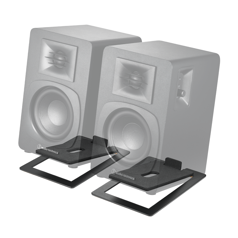 De AT-ST3-luidsprekerstandaards zorgen ervoor dat uw AT-SP3X of andere boekenplankluidsprekers van vergelijkbare afmetingen optimaal geluid kunnen weergeven. Elke standaard is gemaakt van stevig gelegeerd staal met trillingsdempende kurken voetjes en biedt stevige ondersteuning voor een luidspreker met een gewicht tot 3 kg (6,6 lbs). Het oppervlak van de standaard waarop de luidspreker wordt geplaatst, is bekleed met urethaanschuim om ongewenste trillingen verder te onderdrukken. Het oppervlak heeft een lichte hoek van 13 graden, ervan uitgaande dat er op korte afstand van de luidsprekers naar muziek wordt geluisterd. De hoek voorkomt ook dat geluidsgolven worden weerkaatst door harde oppervlakken, wat een negatieve invloed kan hebben op de geluidskwaliteit.