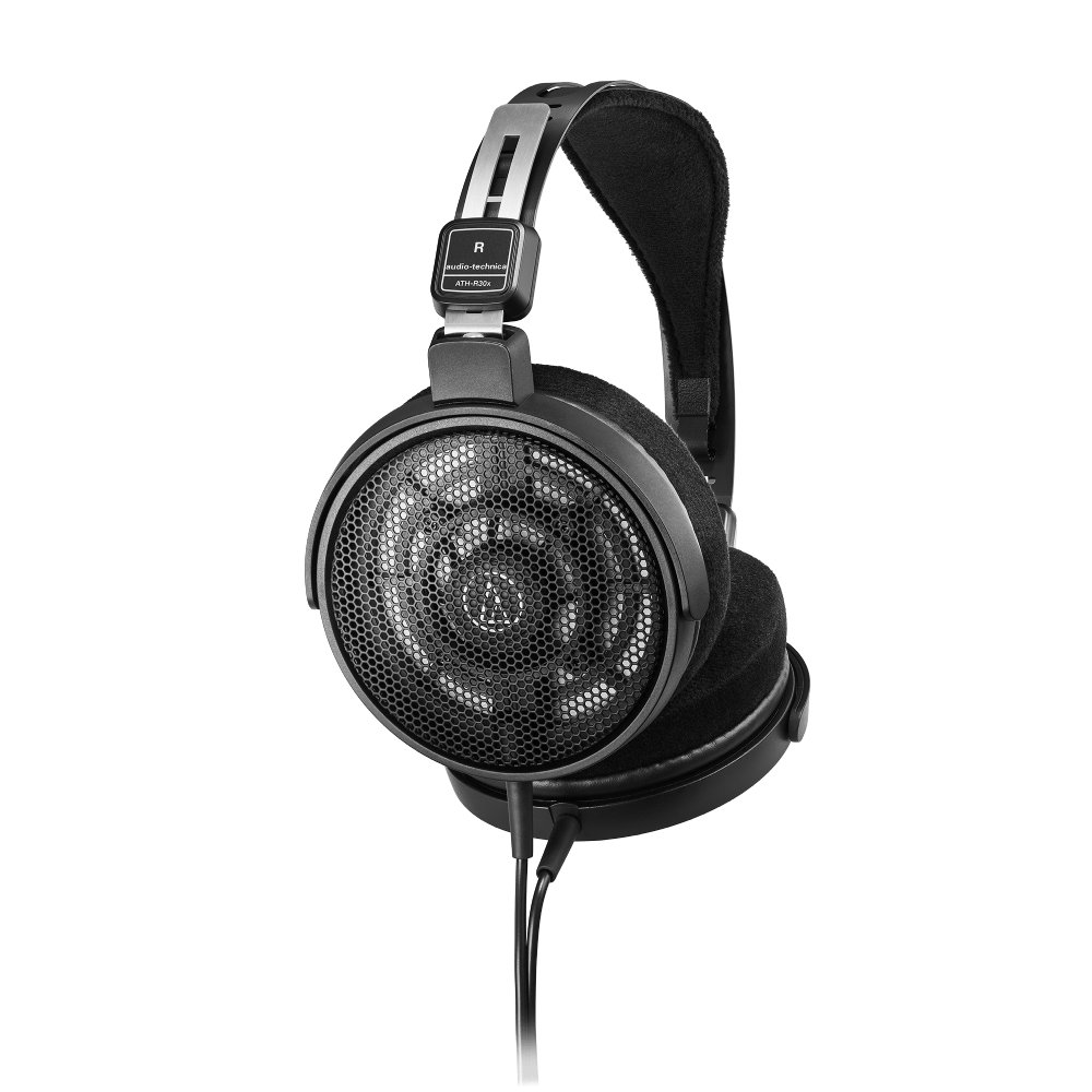 De lichte ATH-R30x (210 g) heeft een verstelbare hoofdband voor een persoonlijke pasvorm. De hoofdtelefoon zit nog comfortabeler, dankzij de vervangbare velours oorkussens en verkoelende, open oorschelpen. Zo blijft u zelfs tijdens lange luistersessies volledig opgaan in de muziek.