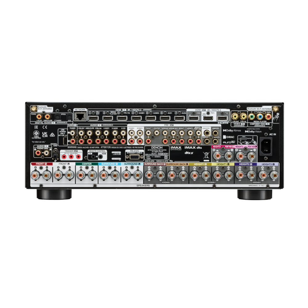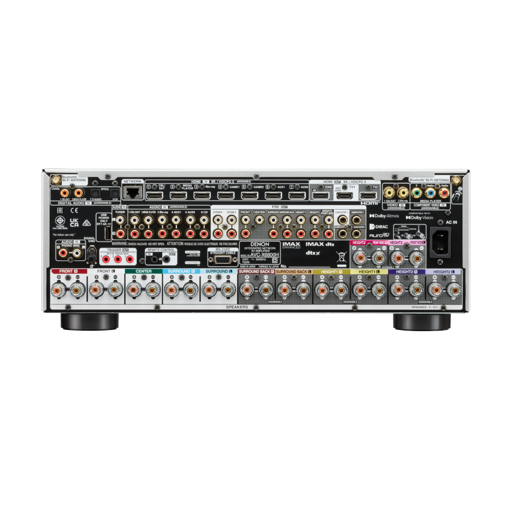 De in Japan ontworpen en geproduceerde AVC-X6800H stuurt 11.4 versterkingskanalen aan voor een ongekende ervaring. Met Dolby Atmos en DTS:X, plus IMAX Enhanced en Auro 3D, dompelt de AVC-X6800H grotere woonruimten onder in adembenemend 3D-geluid. Met HEOS® Built-in stream je draadloos je favoriete muziek.