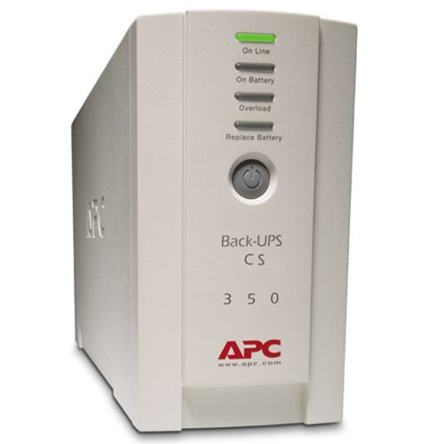 De APC Back-UPS CS BK350EI is een UPS (Uninterruptible Power Supply) die beschermt tegen spanningsschommelingen, piekbelastingen, bliksem en andere verstoringen in de stroomvoorziening. Reserveert stroomcapaciteit en bedrijfstijd voor aangesloten apparatuur waarvoor accuback-up nodig is tijdens bescherming tegen spanningswisselingen voor minder kritische apparatuur. Dit apparaat levert tevens tijdelijk stroom als het stroomnet uitgevallen is.