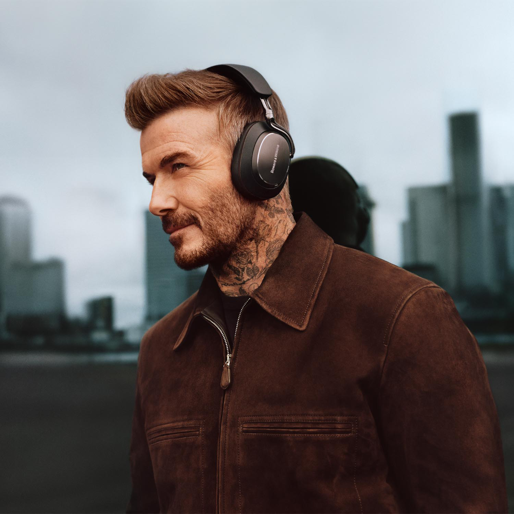 Of het nu tijdens werk of reizen is, David Beckham vertrouwt op zijn Bowers & Wilkins Px8 S2 hoofdtelefoon. Gemaakt van zacht Nappa-leer en massief gegoten aluminium, levert hij precieze, meeslepende klanken met blijvend draagcomfort.
