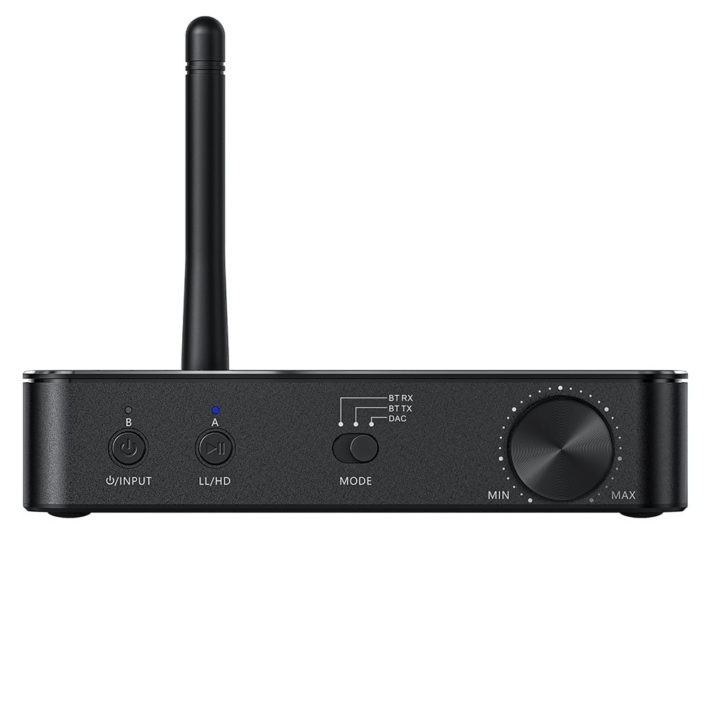 Deze BTA30 Pro werkt met het omzetten van een schakelaar op het frontpaneel ook als Bluetooth zender. Sluit de uitgang van je televisie, game console of je streaming audiobron digitaal op de BTA30 Pro aan en stuur het geluidssignaal draadloos met Bluetooth 5.0 (SBC, aptX, aptX LL, aptX HD en LDAC) naar een bluetooth hoofdtelefoon. Hierbij bedraagt de maximale afstand 30 meter.