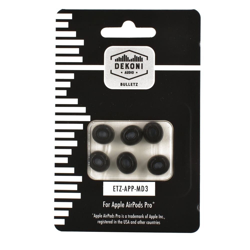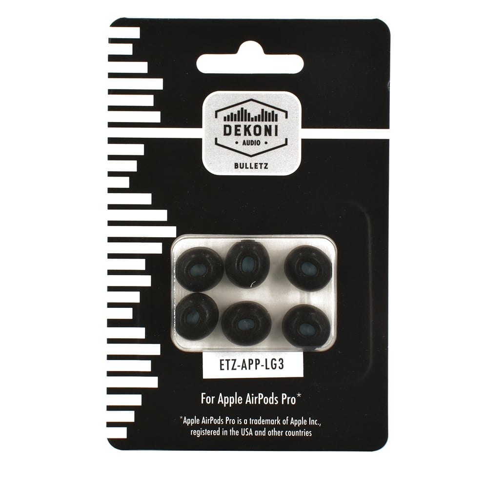 De nieuwe Bulletz van Dekoni Audio voor de Apple Airpods Pros is speciaal ontworpen voor de populairste IEM's van Apple tot nu toe, met een plastic montagering waardoor het dopje precies op zijn plaats klikt, waardoor elke keer weer een perfecte afdichting ontstaat.