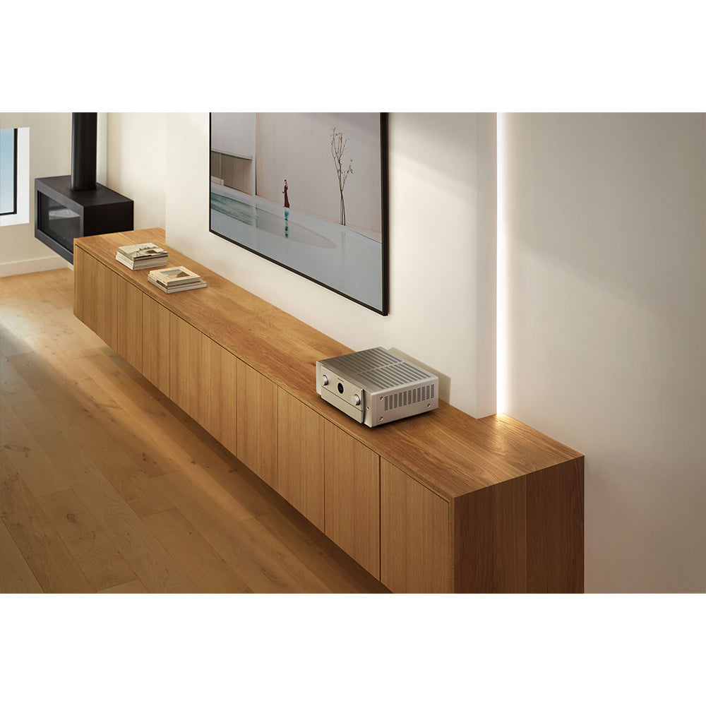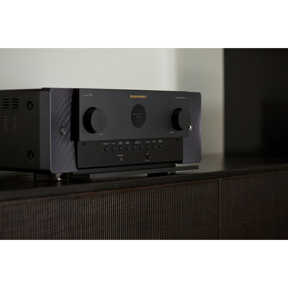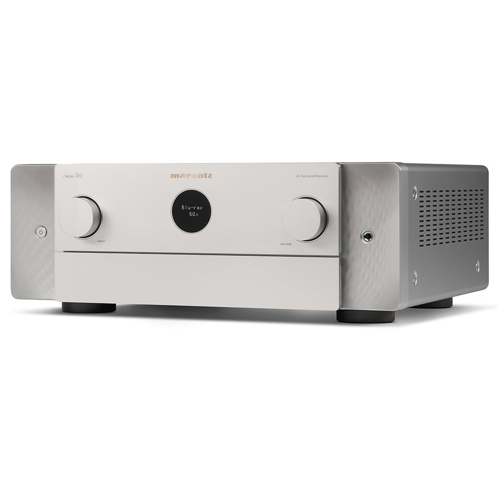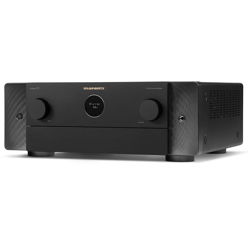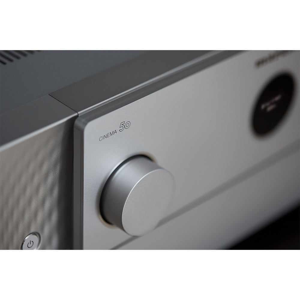 De CINEMA 50 is een moderne uitdrukking van tijdloze ontwerpprincipes en heeft de iconische Marantz patrijspoort, een symmetrisch ontwerp en bedieningselementen op het voorpaneel die elegant uit het zicht zijn geplaatst.