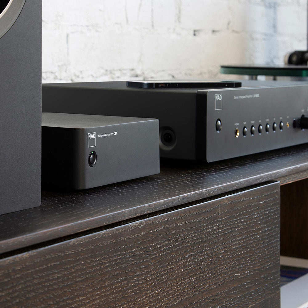 Het compacte, minimalistische ontwerp van de NAD CS1 heeft een paar analoge RCA-uitgangen op lijnniveau voor aansluiting op een stereo-ontvanger, geïntegreerde versterker, voorversterker of een paar luidsprekers met eigen voeding. U kunt ook de optische of coaxiale uitgang van de CS1 gebruiken om digitale audio naar een AV-ontvanger, externe DAC of een paar luidsprekers met digitale ingang te sturen, met een resolutie tot 24-bit/192kHz.