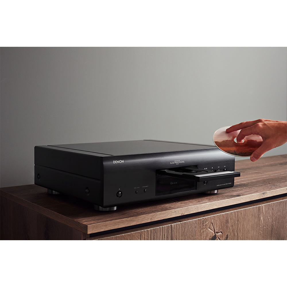 Het door Denon zelf ontwikkelde schijfstation is uitgerust met het hoogwaardige S.V.H. (Suppress Vibration Hybrid). Alle elementen van het ontwerp zijn erop gericht het geluid zo nauwkeurig mogelijk weer te geven.