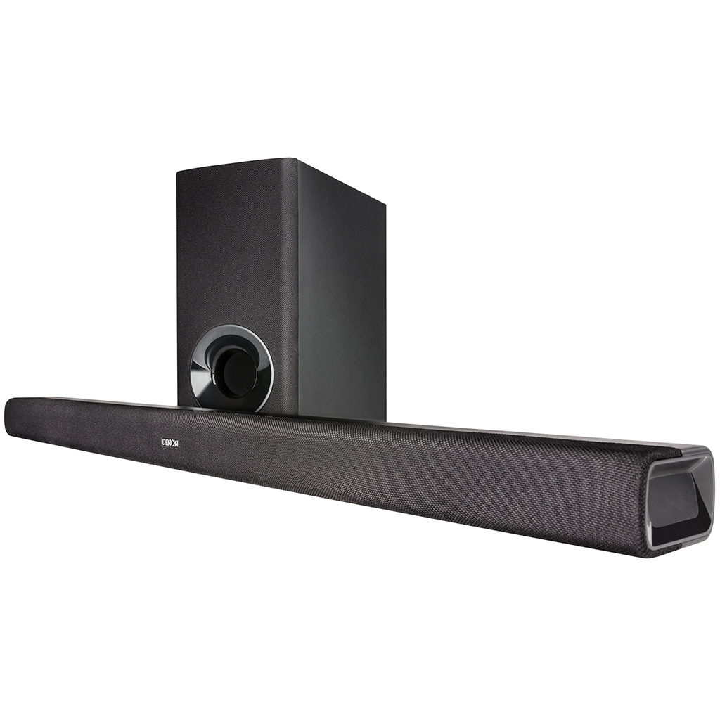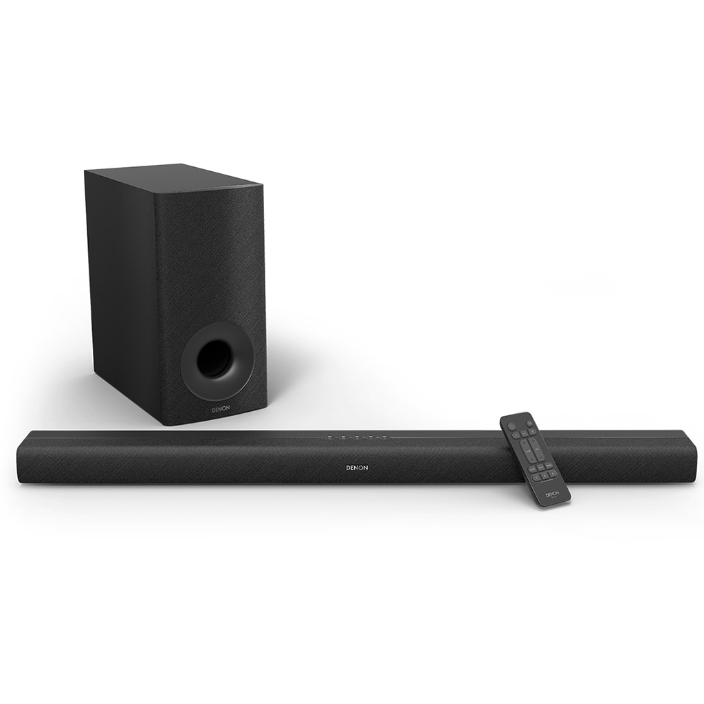 - Tweeweg soundbar met draadloze subwoofer levert krachtig, dynamisch thuisbioscoopgeluid van Denon.