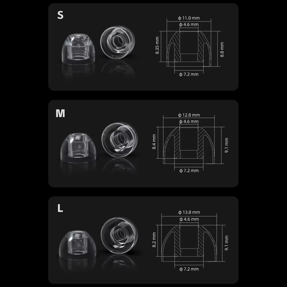 Het FIIO HS20-pakket bevat 3 paar oordopjes in de maten S/M/L, waardoor ze geschikt zijn voor elk oor.