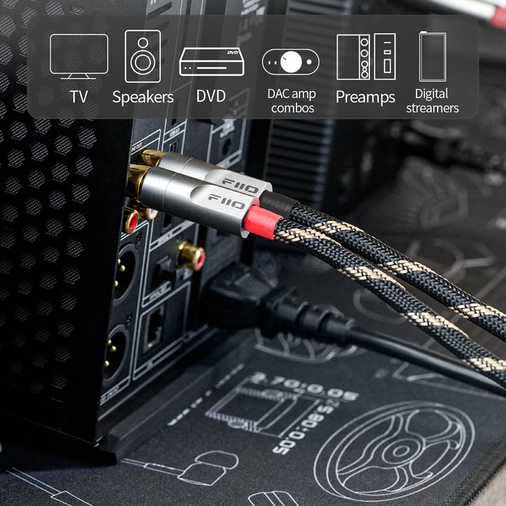 De FIIO LR-RCA4 is een hoogwaardige analoge interconnect waarmee je een analoog signaal van een bron zoals een CD-speler, DAC of streamer naar een versterker of een set actieve luidsprekers verstuurt. Deze interlink heeft een lengte van 20, 80 of 150 centimeter, en is voorzien van kwalitatief goede RCA connectors en is bovendien optimaal afgeschermd zodat deze onder alle condities de best mogelijke prestaties levert.