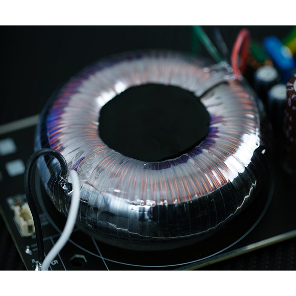 Toroïdale transformatoren hebben van nature vele voordelen, waardoor ze zeer efficiënt zijn. Dit komt doordat de spoelen in de transformator geen vaste hoek hebben waarin ze gebogen zijn, wat leidt tot een gelijkmatiger magnetisch veld en minder magnetische fluxlekkage. In de PL50 zit een op maat gemaakte 50VA ringkerntransformator van audiofiele kwaliteit, gemaakt van hoogwaardig Nippon Steel ijzer en zeer zuivere zuurstofvrije koperdraden voor een hoger rendement, een hogere precisie, een stabielere spanning en een hogere energie-output.