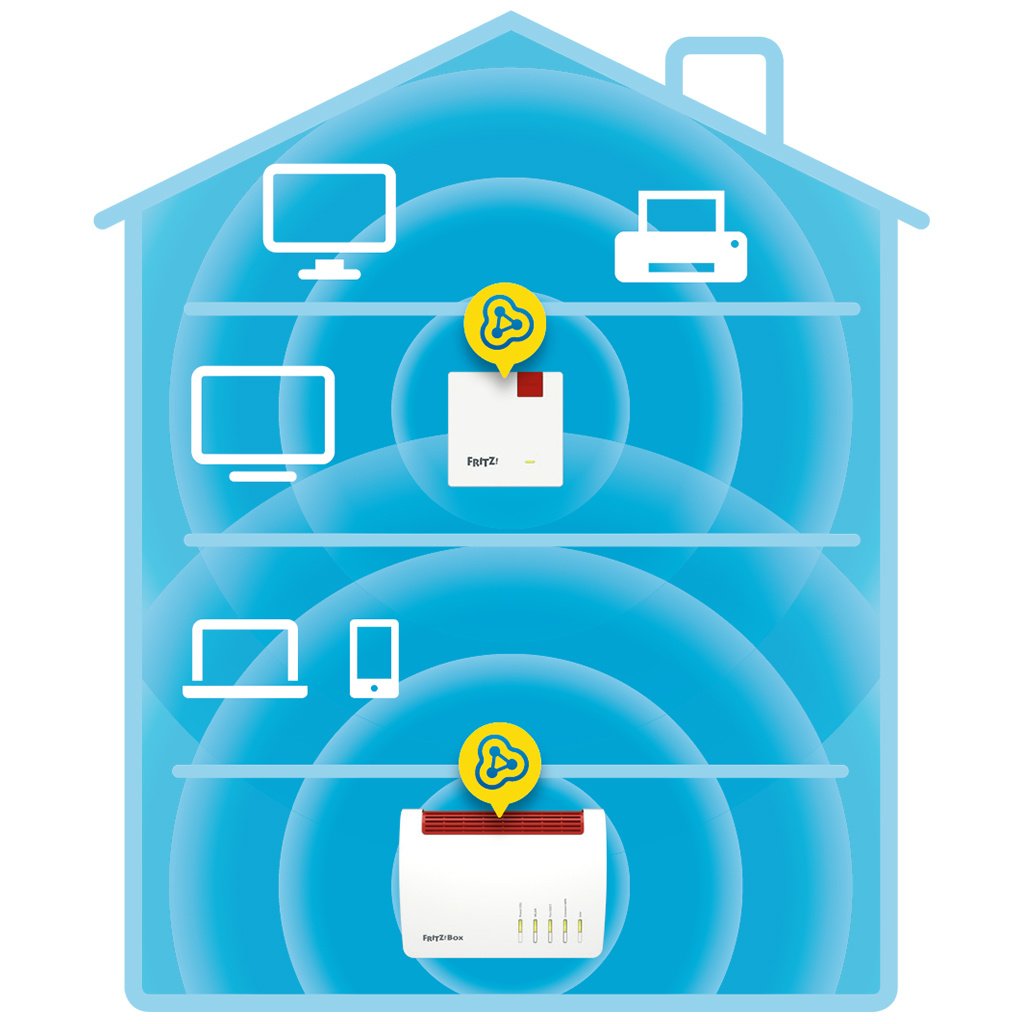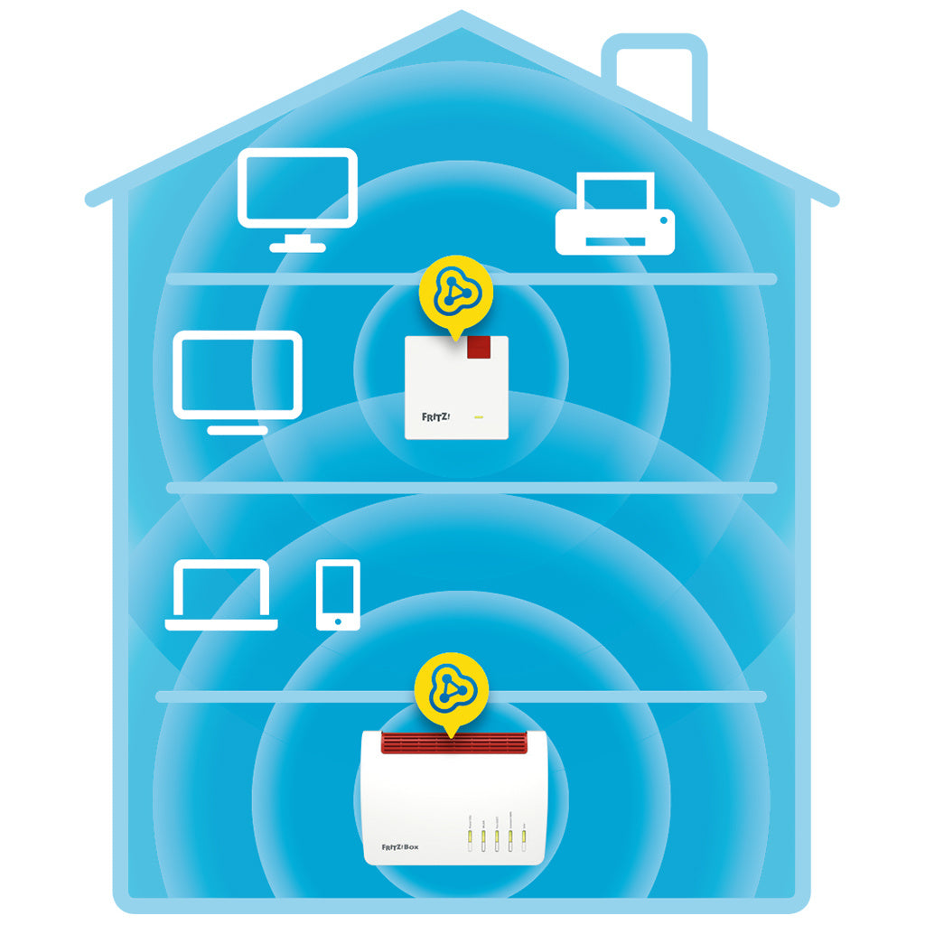 De FRITZ!Repeater 600 is uiterst compact en levert toch krachtige prestaties. Hij vergroot snel en eenvoudig de WiFi-reikwijdte van je thuisnetwerk – een druk op de knop is voldoende. Dankzij Mesh WiFi worden al je apparaten in de 2,4 GHz-band geïntegreerd.