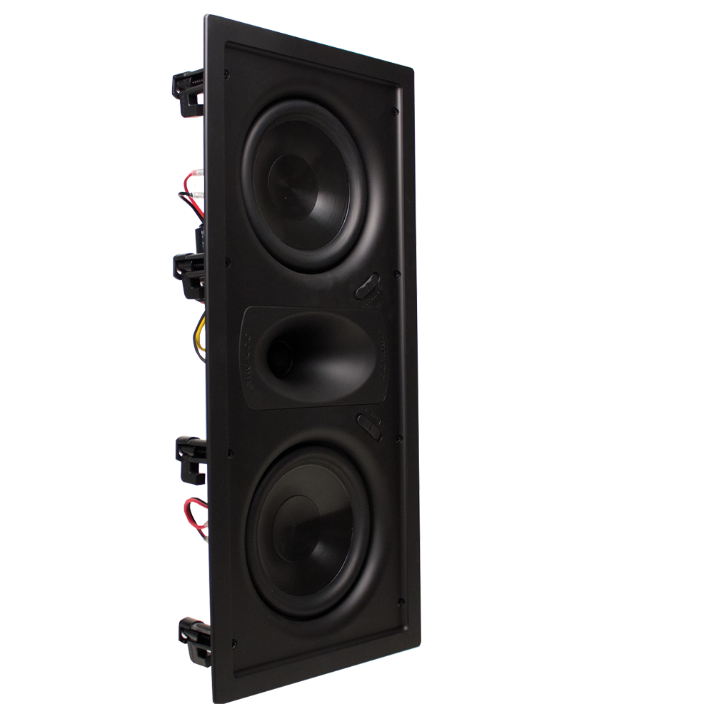 De volledig zwarte in-wall home cinema LCR bevat dubbellaagse spreekspoel 6.5 "geïnjecteerde polypropyleen woofers om de kracht te bieden die nodig is om kamervullende gitaarriffs te weerstaan, evenals de lichtheid die nodig is om een racepianosolo bij te houden. 1 "zijdezachte dome-tweeter wordt geleverd met twee golfgeleiderconussen. Eén standaard recht en nog eens 22 graden schuin om installateurs de flexibiliteit en de mogelijkheid te geven om het geluidsbeeld naar elke kamer te richten. Ontworpen om horizontaal of verticaal te worden geïnstalleerd. Handige aanpassingen van de hoge en lage tonen zorgen voor moeiteloos nauwkeurig afstemmen.