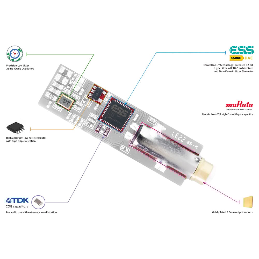 • ES9219 Sabre DAC-chip met Quad DAC+-technologie