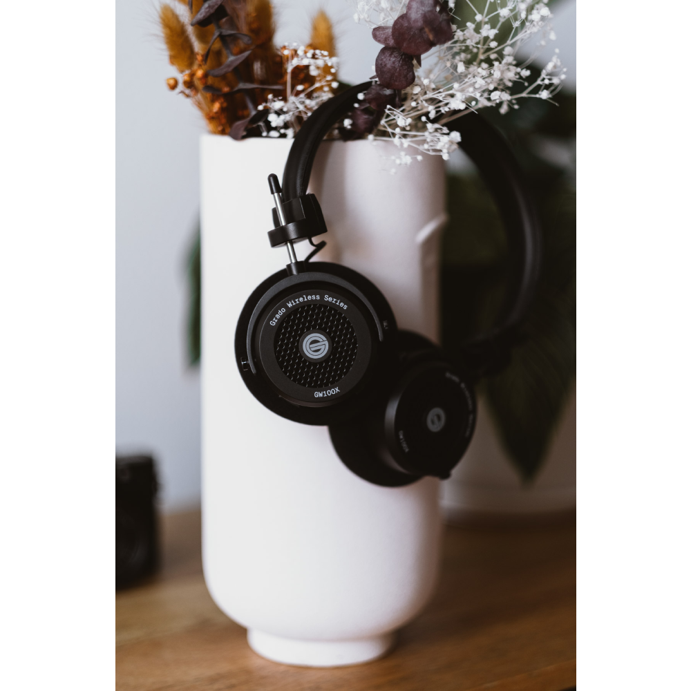 De GW100 is 's werelds eerste Bluetooth-hoofdtelefoon met open achterkant. Hun luidsprekerbehuizingen en interne onderdelen zijn vanaf de basis ontworpen en werken nu samen om het ontsnappende geluid tot 60% te verminderen. Er is een ontwerptaal die in alle Grado hoofdtelefoons terugkomt sinds ze de eerste uitbrachten in 1991. De GW100x zet dit voort en ziet er in één oogopslag uit alsof hij deel uitmaakt van de familie. Deze draadloze Grado-hoofdtelefoon is een mijlpaal in Grado's zeven decennia lange geschiedenis.