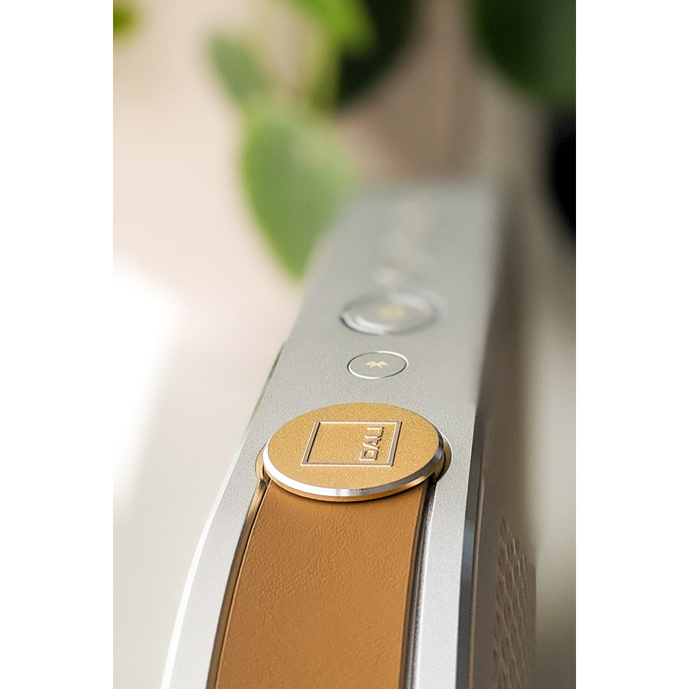 Verkrijgbaar in drie nieuwe kleurenschema's, Iron Black, Caramel White en Chilly Blue, past de Dali Katch G2 elegant in bijna elke omgeving. Een gouden Dali-logo munt verankert de echt leren band - nu in kleur afgestemd op het hoofdkleurenschema.