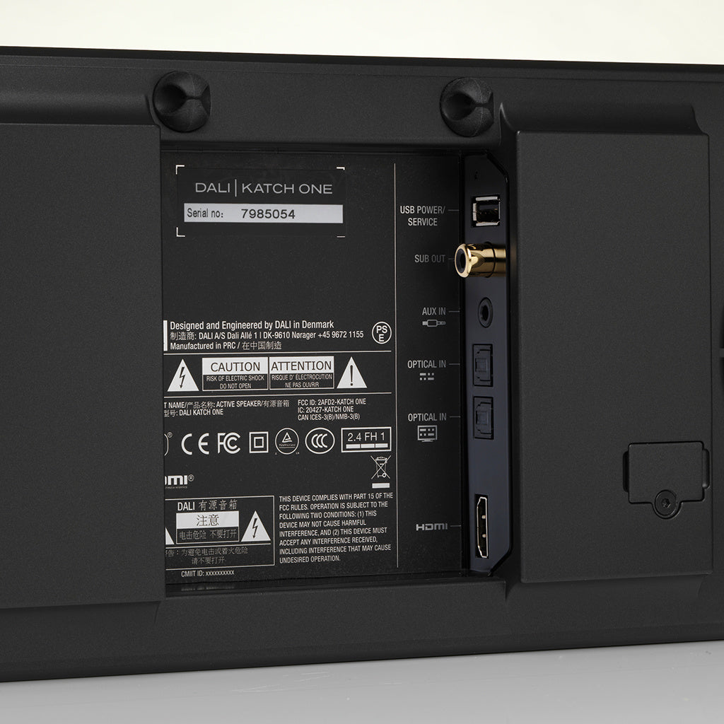 De Dali Katch One is eenvoudig te installeren en heeft alle ingangen die je ooit nodig zult hebben, waaronder HDMI, 2x Optisch, Analoog én natuurlijk Bluetooth (AAC en aptX).