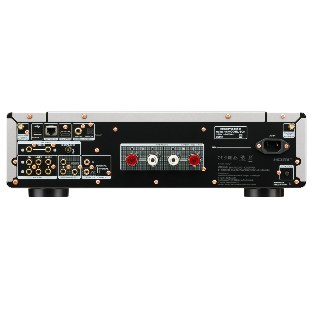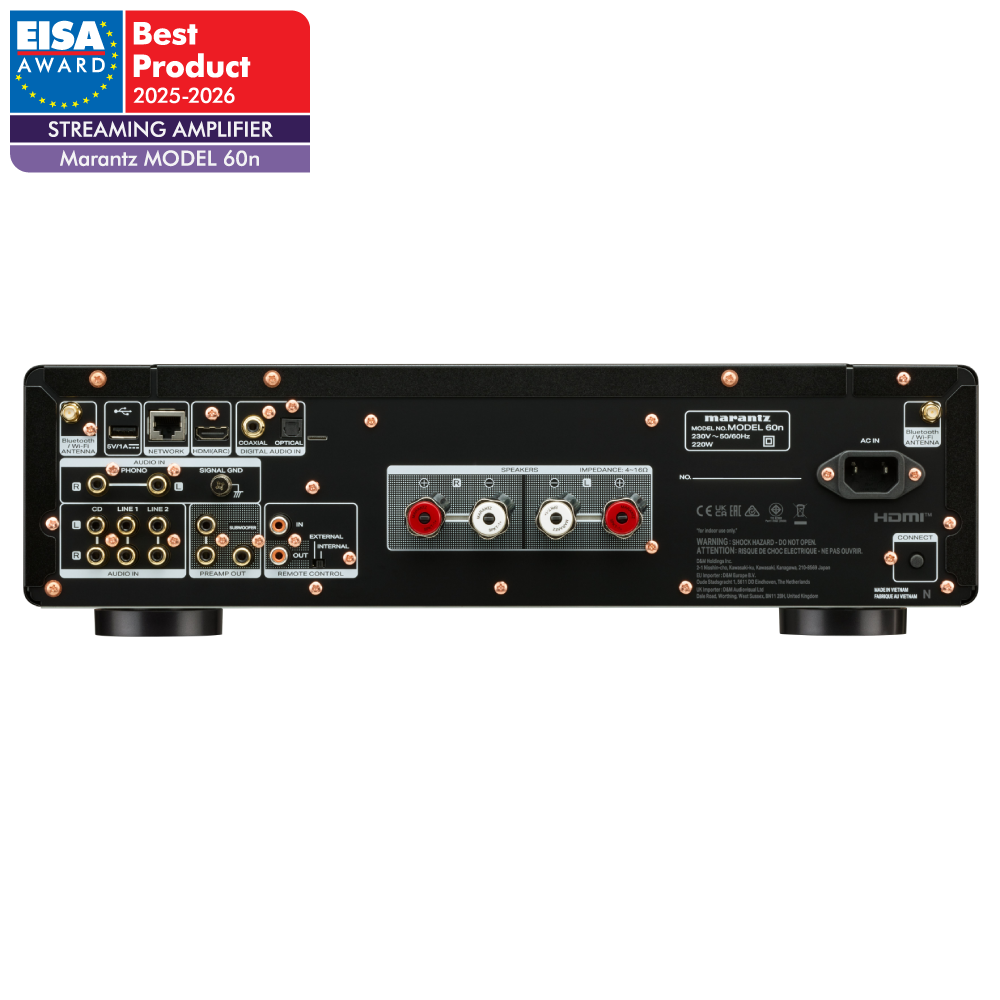 | Omvang van de levering | Marantz MODEL 60n, Snelstartgids, Netsnoer, Afstandsbediening, Batterijen, WiFi+Bluetooth Antenne |
