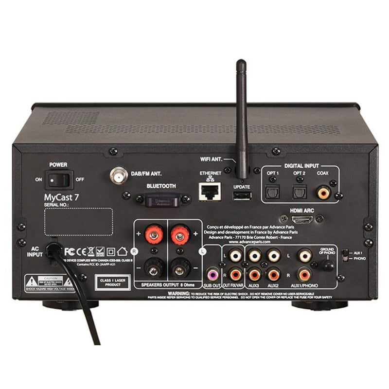 Heeft u een omvangrijke cd-collectie, dan speelt u deze in hoge kwaliteit af met de ingebouwde cd-speler. Behalve de bekabelde of draadloze netwerktoegang van vele tienduizenden gratis internetradiostations is deze Advance Paris versterker geschikt voor de ontvangst van de analoge FM band en voor muziekontvangst in digitale geluidskwaliteit via DAB+. Bovendien heeft de fabrikant de MyCast 7 voorzien van analoge en digitale aansluitingen en is deze voorzien van een HDMI-ARC ingang zodat deze multiroom versterker het ideale muzikale hart is van al uw entertainment. Heeft u nog een platenspeler staan? Deze sluit u direct op de schakelbare AUX/Phono ingang aan. Hiermee behoort de MyCast 7 van Advance Paris tot een van de meest complete muziekoplossingen van dit moment.