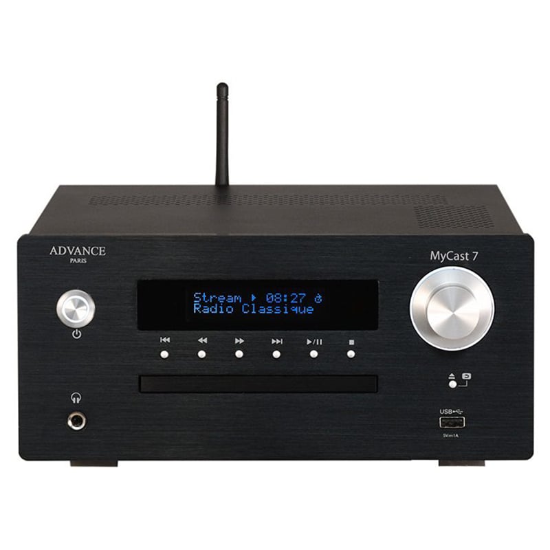 De MyCast 7 is een uiterst complete streaming versterker met een ingebouwde cd-speler, FM, DAB+ en Internet tuner. Deze uiterst compleet en geheel in metaal uitgevoerde all-in-one van Advance Paris heeft een compacte bouwwijze en levert een audiofiele highres geluidskwaliteit. Ondanks de geringe grootte van deze all-in-one, beschikt de MyCast 7 over voldoende dynamische reserves en heeft voldoende vermogen om lastige luidsprekers probleemloos aan te kunnen sturen.