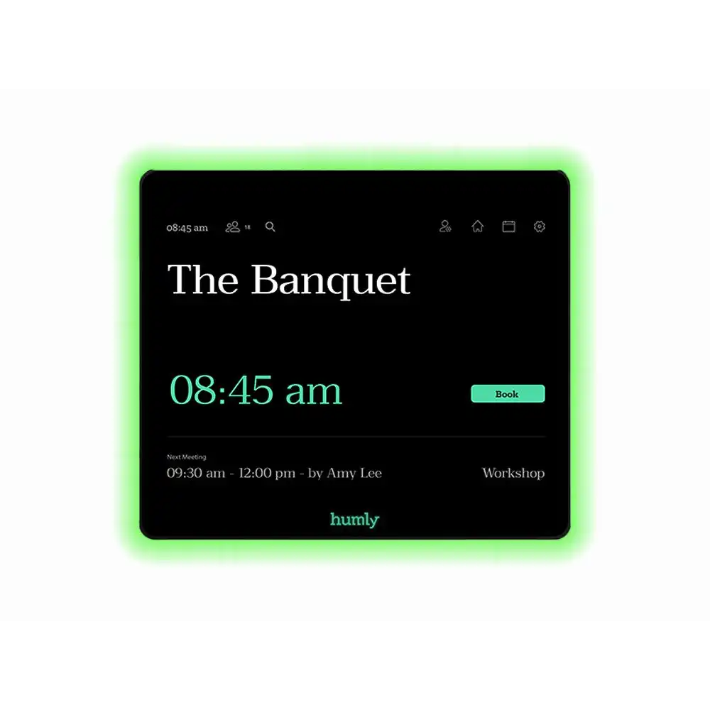 De Humly Room Display is de perfecte interactieve display voor uw samenwerkingsruimtes. Onze oplossing voor het boeken van vergaderruimtes helpt u de ruimte te vinden die u al geboekt heeft, of leidt u naar een ruimte die op dit moment beschikbaar is.