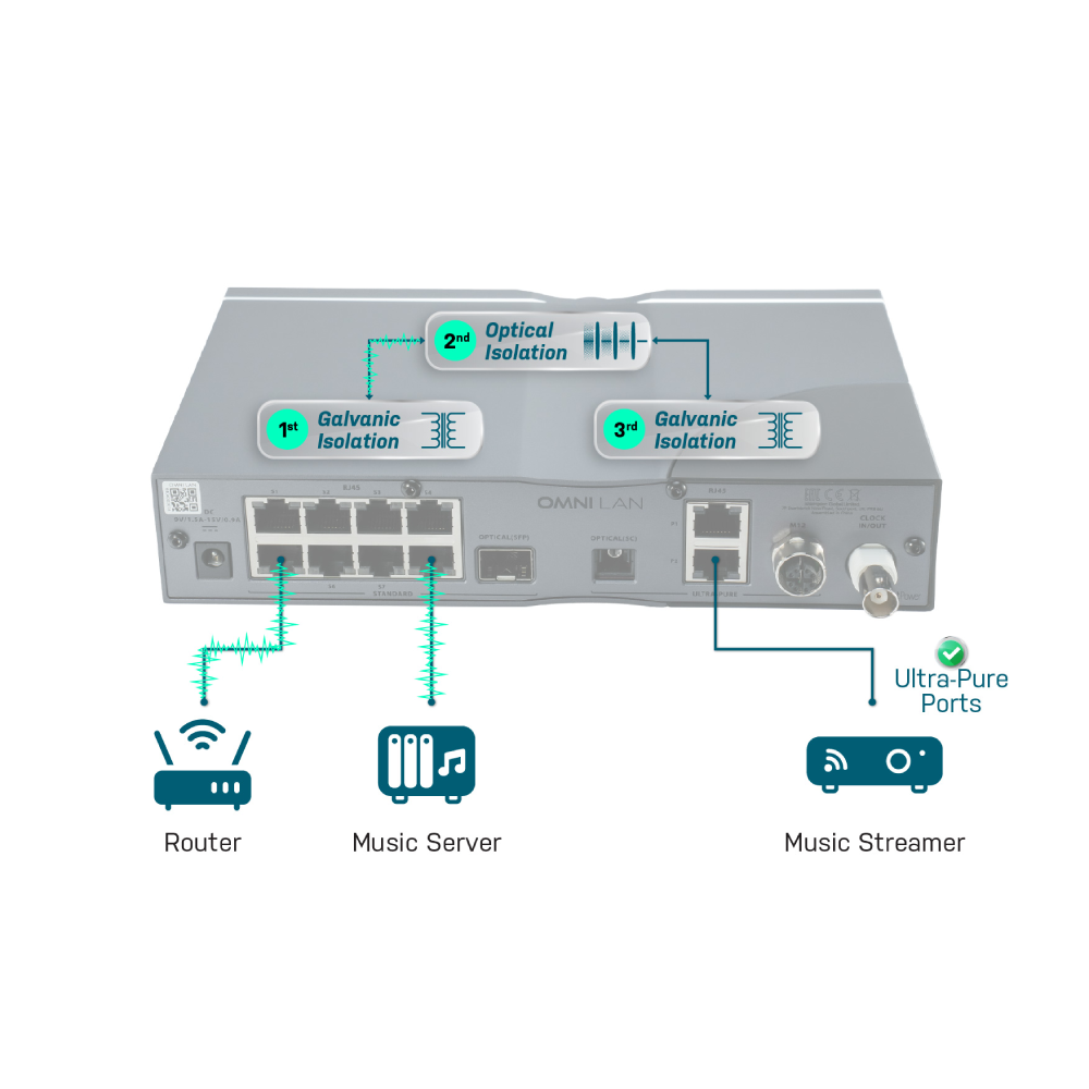 Deze combinatie van isolatie, data-herklokken, PSU Active Noise Cancellation in combinatie met extra aardeschakeling is niet beschikbaar op enkele andere netwerkswitch of router.