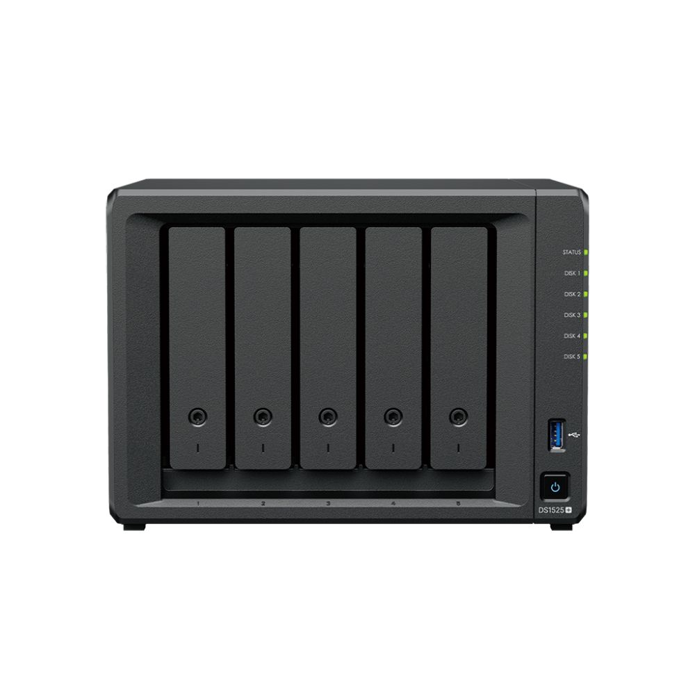 De Synology DS1525+ is een veelzijdige opslagoplossing met 5 sleuven die meegroeit met jouw behoeften, met ondersteuning voor opslaguitbreiding, 10GbE-netwerken en SSD-caching. De ingebouwde 2,5GbE-netwerken zorgen voor uitstekende netwerkprestaties. Dankzij Synology DiskStation Manager (DSM) is dit apparaat een flexibele alles-in-één oplossing voor het delen, synchroniseren, back-uppen en bewaken van gegevens.