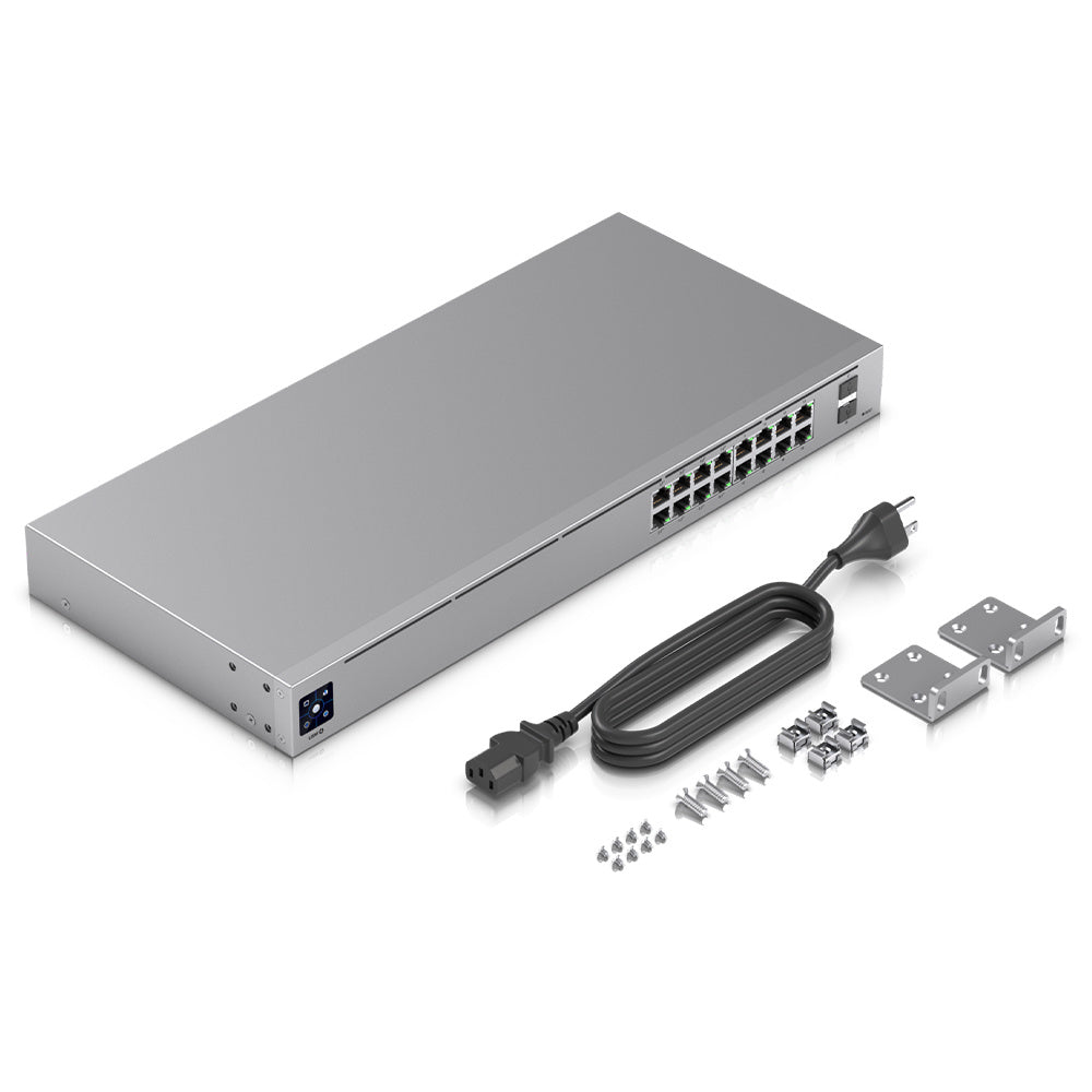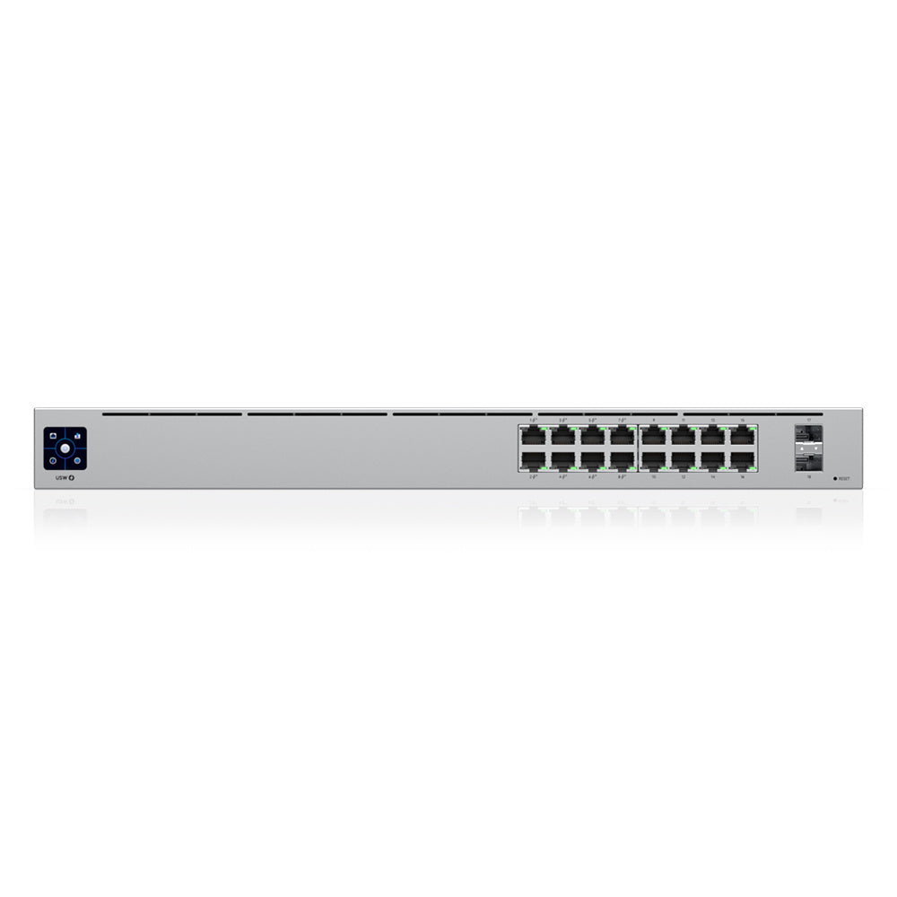 De USW-16-POE is een managed Gigabit Layer 2 switch met zestien Gigabit Ethernet poorten met acht auto-sensing 802.3at PoE+ poorten, en twee SFP poorten. De switch biedt Gigabit PoE links naar RJ45 Ethernet apparaten en heeft daarnaast Gigabit fiber uplink opties. De USW-16-POE beschikt over een 1,3" touch LCM met status informatie. Dankzij de diepte van 7,9" kan deze compacte en fanless switch eenvoudig gemonteerd worden in een SOHO rack.