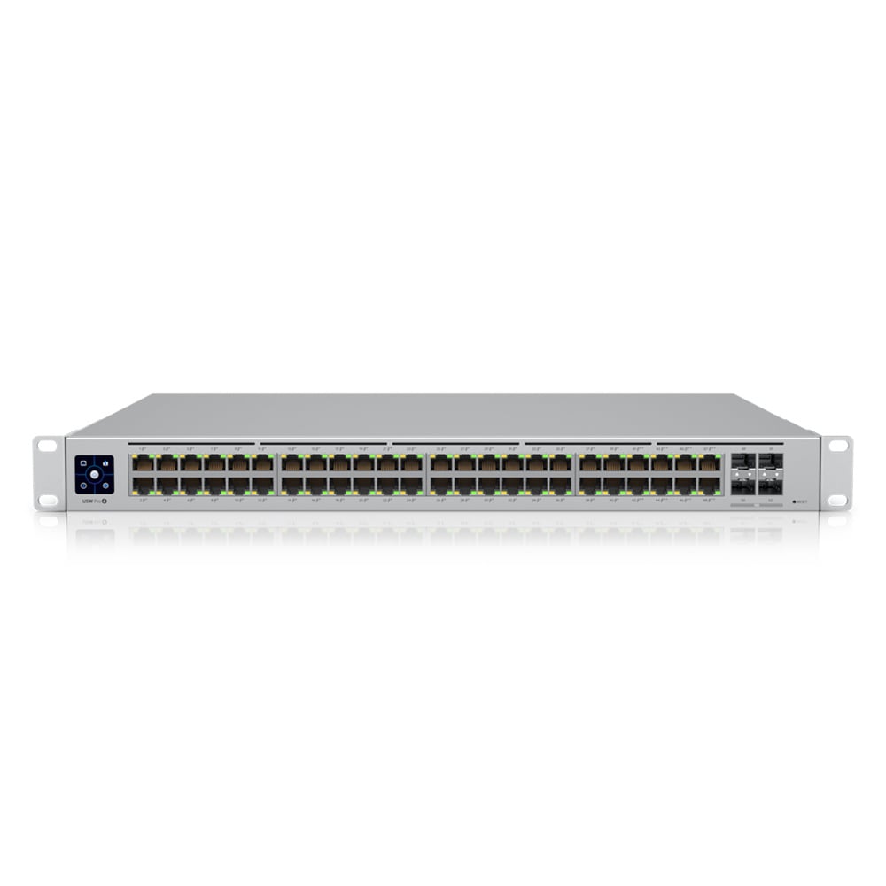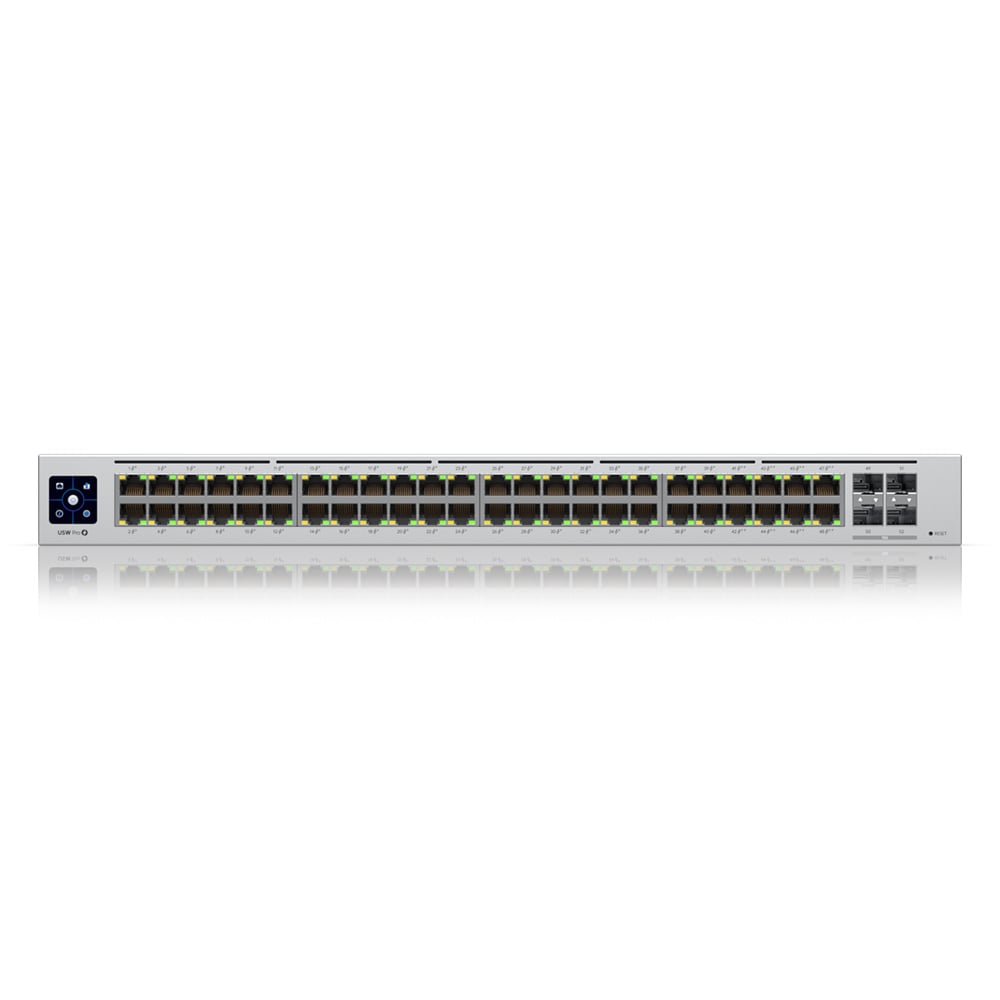 De USW-Pro-48-POE is een managed Gigabit Layer2 en Layer3 switch met auto-sensing 802.3at PoE+ en 802.3bt PoE++ ondersteuning. De switch heeft veertig PoE+ en acht PoE++ ethernet poorten met totaal 600W PoE budget. Daarnaast beschikt de USW-Pro-48-POE over vier SFP+ poorten met 10Gbps uplink mogelijkheden, stille koeling en een 1.3" touch LCM met status informatie.