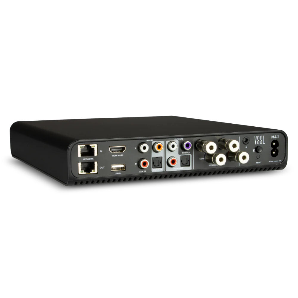 De VSSL MA.1 is een krachtige streamingversterker voor één zone, speciaal ontworpen voor de manier waarop u vandaag de dag luistert. Met een vermogen van 140 watt per kanaal en moderne connectiviteit zoals HDMI eARC, Wi-Fi 5 en Bluetooth LE Audio, maakt de MA.1 het gemakkelijk om te genieten van ongelooflijk geluid vanuit elke bron in uw huis. Of u nu uw favoriete afspeellijst streamt, uw tv aansluit of integreert in een smart home-systeem, de MA.1 combineert prestaties, flexibiliteit en eenvoud in één strak apparaat.
