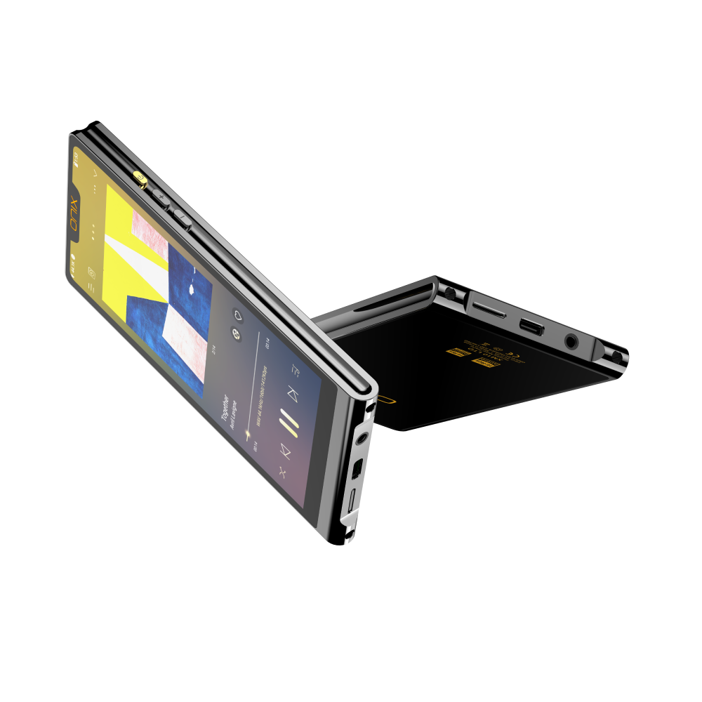 Met een elegante behuizing van roestvrij staal en een dikte van slechts 11,5 mm is deze speler ontworpen voor echte draagbaarheid, zonder in te leveren op luxe of stevigheid. De elektrolytisch gepolijste afwerking geeft hem een diepe, glanzende uitstraling.