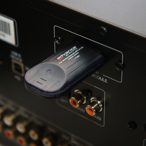 De X-FTB01 is een Bluetooth aptX+AAC (Apple) ontvanger die via de Bluetooth digitale ingang op de achterzijde van de Advance apparatuur aangesloten kan worden, mits hiermee voorzien.